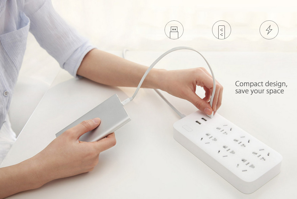 -Trên ổ cắm điện Xiaomi Mi Power Strip, nhà sản xuất đã tích hợp thêm 3 đầu USB cho phép sạc đồng thời 3 thiết bị cũng một lúc. Mỗi đầu USB có đầu ra 5V – 2.1A khá nhanh và ổn định so với mặt bằng chung của các phụ kiện sạc hiện nay.