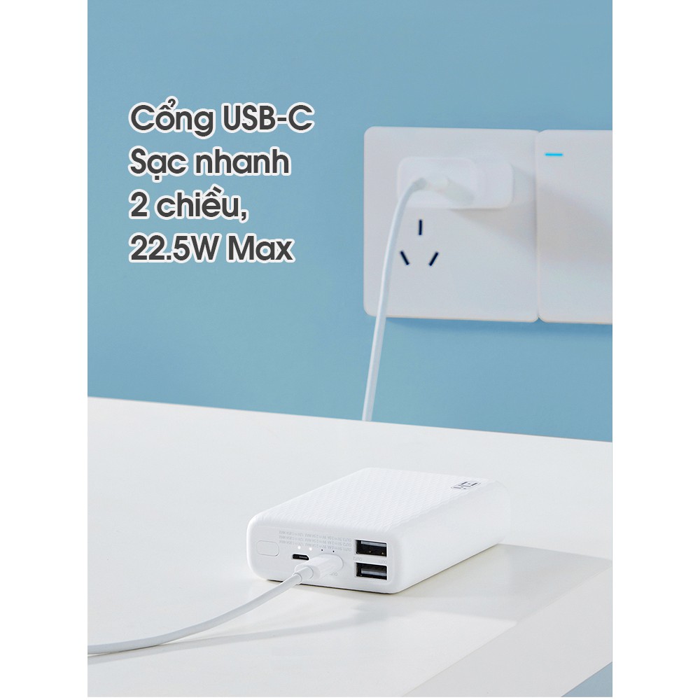 Ngoài ra, giao diện cổng đầu ra USB-A và USB-C hỗ trợ ra đến 22.5W MAX (một cổng) và có thể cung cấp khả năng sạc nhanh cho các thiết bị của bạn một cách ổn định và linh hoạt. Còn 2 cổng đầu vào USB-C và Micro-USB hỗ trợ bạn dễ dàng cung cấp năng lượng cho sạc dự phòng.